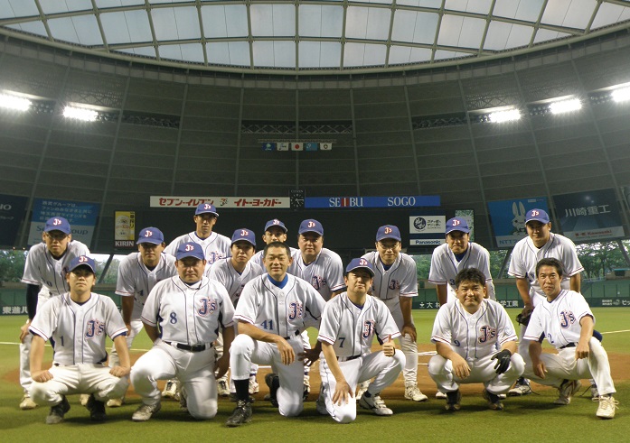 エキシビションマッチが開催された。 東京ドームの場合、第1試合の開始時間は23時だが西武ドームは0時スタートである。しかも東京ドームの場合だと試合時間は最大で1時間40分だが西武ドームは最大2時間30分と余裕がある。我がジュピターズは第3試合となり早朝5時25分プレイボールで終了予定時刻は朝7時55分だった。チームが創設して今年で26年目。すでに450試合以上を戦ってきたが、さすがに早朝5時台プレイボールの経験はなかった。今までで1番早い試合開始時刻は1996年7月、チーム創設通算100試合目を記念したダブルヘッダーの第1戦目が8時開始だった。この通算100試合目記念ダブルヘッダーは第1試合を朝8時から大宮で戦い、試合後に吉祥寺にある日産厚生園に移動して12時から第2試合を戦った。1日に移動をして2試合戦うので第1試合は朝8時という早い時間だった。ちなみに大宮での対戦相手はゼファーズで第2試合の相手はホワイトソックスだった。 それよりも早い早朝5時25分プレイボール。西武ドームはドームと言えど屋根を後から被せただけの球場のため東京ドームのような空調もなく、信じられないほどの蒸し暑さだった。ドーム初の9イニング制、そしてドーム初のエキシビションマッチ。すでに朝日は昇りきっていた。カクテル光線と西武ドームの隙間から差し込む朝日を浴びて予定より5分早い早朝5時20分にプレイボールとなった。 ●1回表 ジュピターズは後攻のため三塁側ベンチ。西武ドームはホームチームであるライオンズが三塁側ベンチを使用している。なのでライオンズと同じベンチに陣取った。そして守備位置に走るメンバーは普段とは少し違っていた。1990年、今から26年も前に誕生したジュピターズだったが、その時の創設メンバー、いわばジュピターズ1期生が今も現役で頑張っている。一塁に西浦、二塁に後藤、三塁に手塚、右翼に箕浦の1期生4名は創設当時と同じポジションに就いた。また1990年の途中に入団したため唯一の1.5期生である則は今も当然のように先発マスクを被る。さらにチーム2年目の1991年に入団した2期生の伊藤が遊撃、田辺が中堅を守り、翌1992年入団の3期生、佐藤が左翼に就いた。投手を除き1期生〜3期生までの8名のレジェンド達が記念すべき西武ドームの守備に散って行った。このレジェンド達8名が全員揃って守備に就くのは15年以上ぶりである。しかし8名ともSリーグ設立前に入団し活躍しているので、まさに神8である。そんな神8をバックに先発マウンドに登ったのはジュピターズ史上最多勝利数を誇るエースナンバーの仁上。チーム内では若手でも、もう16年目選手である。期待と不安の混じる中で初めての西武ドームのマウンドを踏みしめた。 先頭打者をショートゴロに打ち取るも続く打者に四球を与えてしまうと、次打者の打球はライトへ飛ぶ。これを右翼手の箕浦がドームの屋根で目測を誤ったのか後ろに逸らしてしまい、ボールはフェンス直前まで転がった。その間に一塁ランナーがホームを踏み、打ったランナーも三塁へ達してしまった。さらに続く打者には二遊間を破られ三塁ランナーが生還。結局、2点を先制される立ち上がりとなってしまった。 ●1回裏 いきなり2点を追いかける形となったジュピターズの打順はドーム恒例・不公平のない出席率順。今回の出席率は前回の東京ドーム試合があった2012年から今季2015年第9戦まで全58試合を算出。その間に入団した鈴木(武)と仲里は入団してからの出席率となったが、なんと8番打者まで出席率が9割以上と高いことに驚いた。そしてドーム4度目の1番打者は当然、出席率10割の後藤だが、2番の伊藤も出席率10割だった。高い出席率のメンバーが多いからこそチームは長く続いている証であり、誇りでもある。そんな出席率の高いメンバー順で早く試合を振り出しに戻したかった。 1番の後藤は西武ドーム最初にスイングしたバットにキャッチャーミットがかすり打撃妨害で出塁。しかし後続続かず呆気なく初回の攻撃終了。 ●2回表 簡単に二死を取った仁上だったが、そこから自らのエラーも含む、まさかの3連続エラーで二死満塁のピンチ。そして続く打者に左中間を大きく破られる走者一掃のスリーベースを浴びて3点献上で計5点のビハインドとなってしまった。 ●2回裏 二死から菊池が死球で出塁したものの一塁くぎ付け。いまだ二塁ベース踏めず。 ●3回表 先頭打者にヒット、次打者に四球、一死後にヒットで一死満塁のピンチを迎えたが、ここは仁上が踏ん張り3者残塁の無失点に抑えた。ちなみに、この回からレジェンド達は遊撃の伊藤と捕手の則を残し全員ベンチへ。 ●3回裏 ピンチの後にチャンスあり。先頭の岡村がいきなり初球をぶつけられ死球出塁。そしてすかさず二盗。この試合初めて二塁ベースを踏むことができた。続く箕浦がセンター前にキレイに弾き返しチーム初ヒット。岡村は三塁へ達し、箕浦も二盗で無死二、三塁と初めてチャンスを作る。次打者である仁上が打席に入ったが、捕逸の間